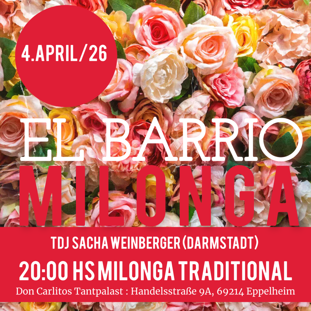 Los geht’s um 20:00 hs. Nov bis April oder 21:00 hs Mai bis Juli. Milonga bis ca. 00:00 Uhr. mit unserem 100% Fiesta Milonguera!
