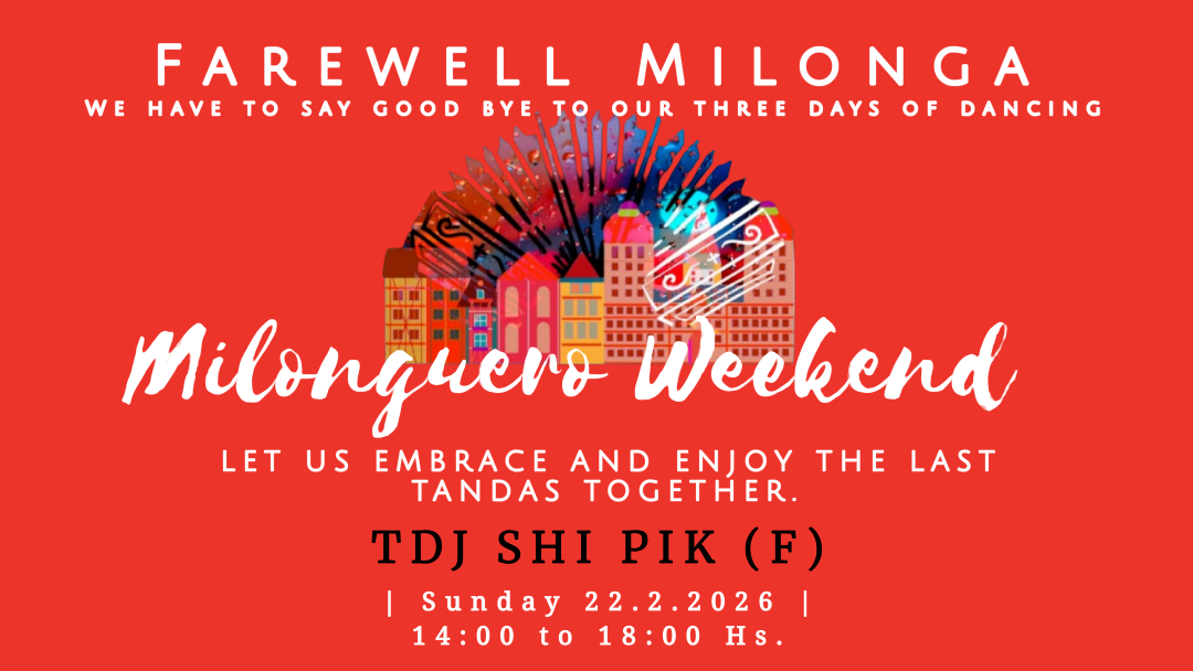 It’s the time to hug each other again and again during 3 days of Milonga. It will be a weekend with beautiful milongas (+ Peña Milonguera), in a wonderful place with friends, excellent dancers and the best international DJs.
